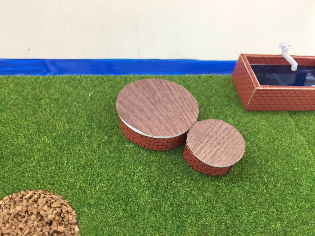ひとつ目の「作業のしやすさ」については、プランターの奥行きを短くし、2段にしました。そのことによって、今のプランターの「奥行きが長すぎて、奥に手が届かず手入れがしにくい」という点を改善しました。また、どんな服装でも立って作業ができるように高さを900mm にしました。ふたつ目の「くつろぎの空間」については、プランターの横にイスを置き、作業の合間に休憩したり、ファーマーさんどうしでも会話が生まれるように工夫し、配置しました。また、座った時に周りに自分たちで育てている野菜をより見ることができるように、プランターとイスをずらして配置しています。そしてこのイスの座面を開けると作業に使う道具を収納することができるようにしました。