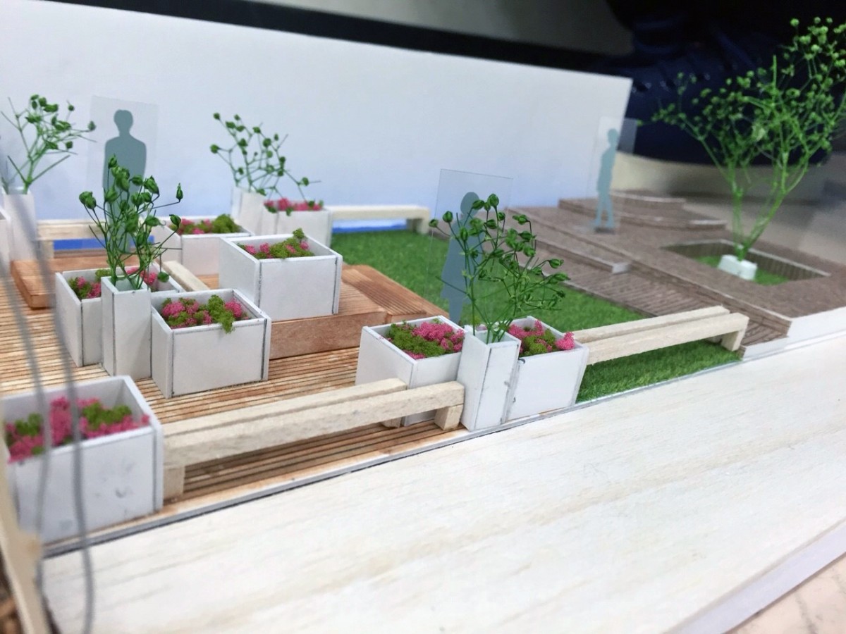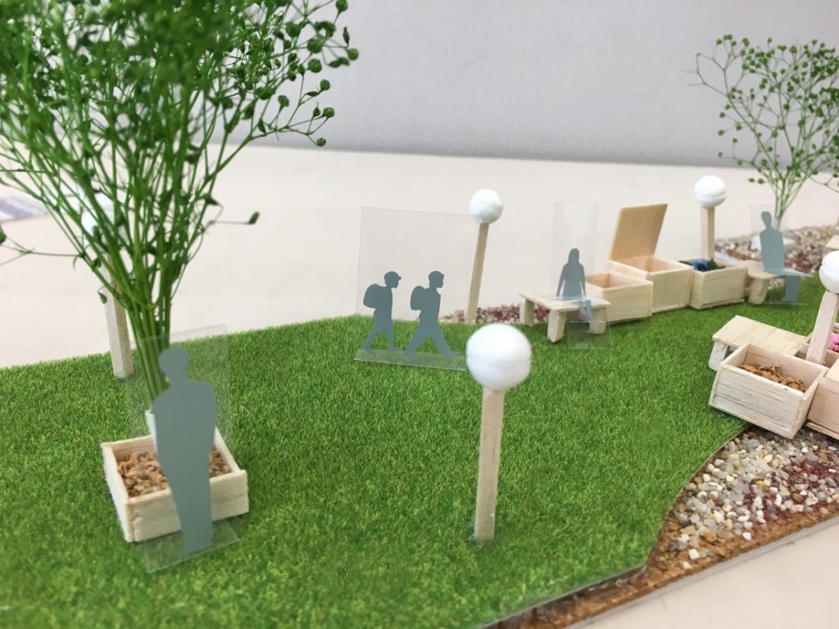学生は昨年9月、プロジェクトを開始し、準備学習や現地踏査・計画立案などのプロセスを進め、11 月28 日、まる一日のシャレット(短期集中課題)で、9通りの計画案の模型を製作しました。