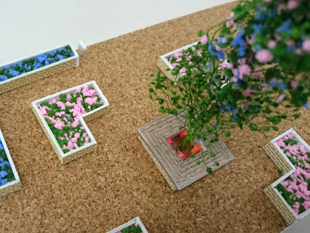 回遊性を高めた配置です。花壇を眺める楽しさを提案しました。