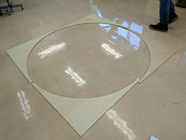実物大でCADの図面を印刷し、これを型紙にして、1枚のサブロク板(3尺×6尺、一般的には910